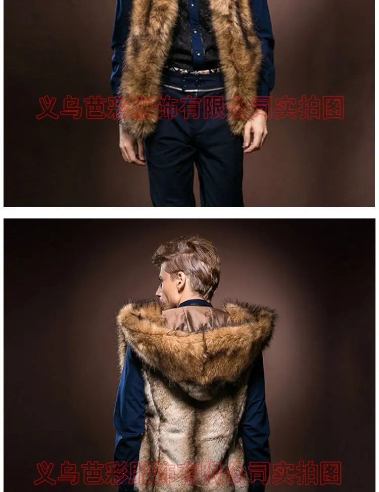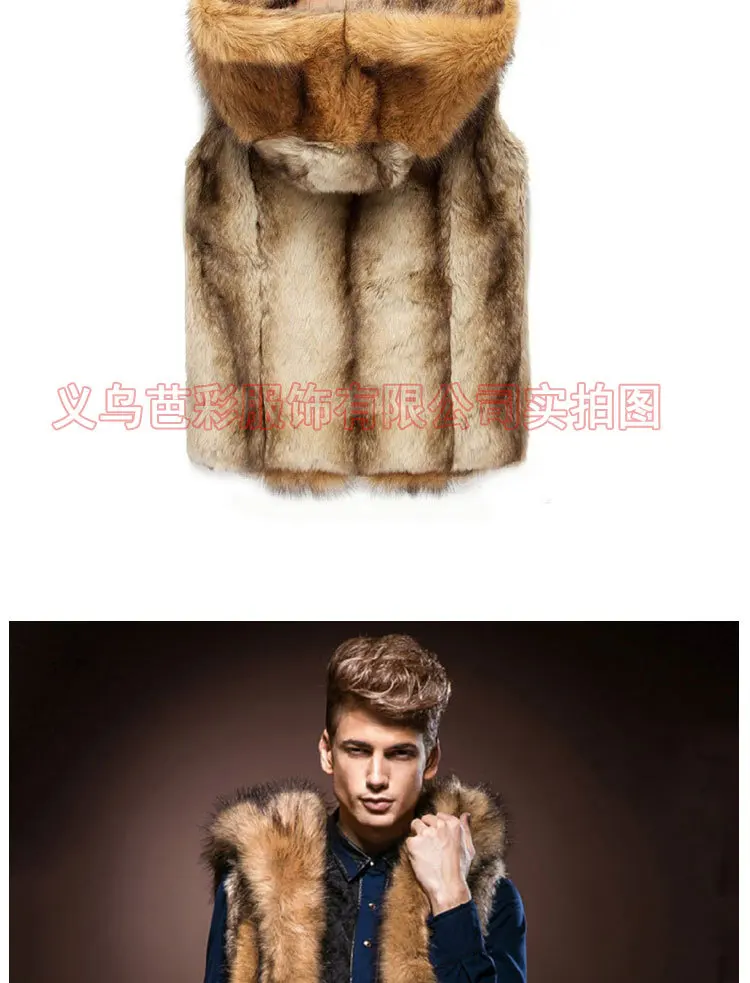 Men Faux Fox Fur Coat Casual Vest Jacket Thick Warm Coats Sleeveless Hooded Outerwear Short Jackets Slim Fit Winter 2023